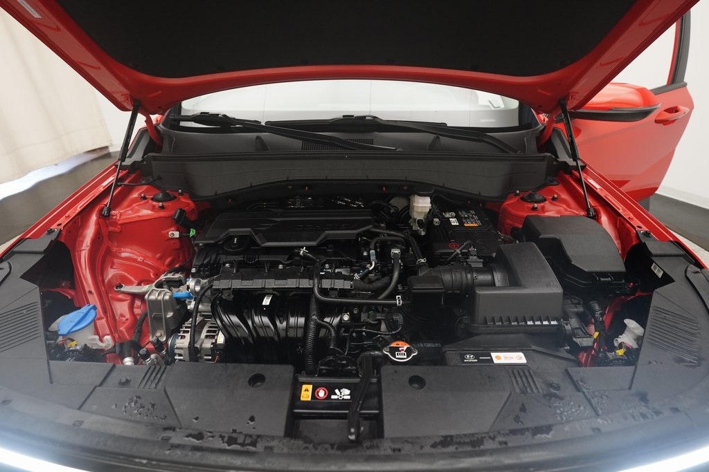 4-Wheel Disc Brakes, 6 Speakers, ABS Brakes, Air Conditioning, Alloy wheels, AM/FM Radio, Available Sirius XM Radio, Apple CarPlay & Android Auto, Auto High-beam Headlights, Automatic temperature control, Brake Assist, Bumpers: body-color, Cloth Seat Trim, Delay-off headlights, Driver door bin, Driver vanity mirror, Dual front impact airbags, Dual front side impact airbags, Dual-Climate Control, Electronic Stability Control, Emergency communication system: Bluelink+, Four wheel independent suspension, Front anti-roll bar, Front Bucket Seats, Front Center Armrest, Front reading lights, Fully Automatic Headlights, Heated Sideview Mirrors, Illuminated Entry, Leather Steering Wheel, Low Tire Pressure Warning, Occupant sensing airbag, Option Group 01, Outside Temperature Display, Overhead airbag, Panic alarm, Passenger door bin, Passenger vanity mirror, Power Adjusting Driver Seat, Power Sideview Mirrors, Power Steering, Power Windows, Radio: AM/FM/HD Radio/SiriusXM Audio System, Rear anti-roll bar, Rear seat center armrest, Rear Spoiler, Rear Window Wiper, Rear-View Camera, Rear/Front Window Defroster, Remote keyless entry, Security system, Speed Control, Speed-sensing steering, Split Folding Rear Seat, Steering Wheel Mounted Audio Controls, Tachometer, Telescoping steering wheel, Tilt steering wheel, Traction Control, Trip computer, Turn signal indicator mirrors, Variably intermittent wipers, Wheels: 18" x 7.0J Glossy Black Alloy.